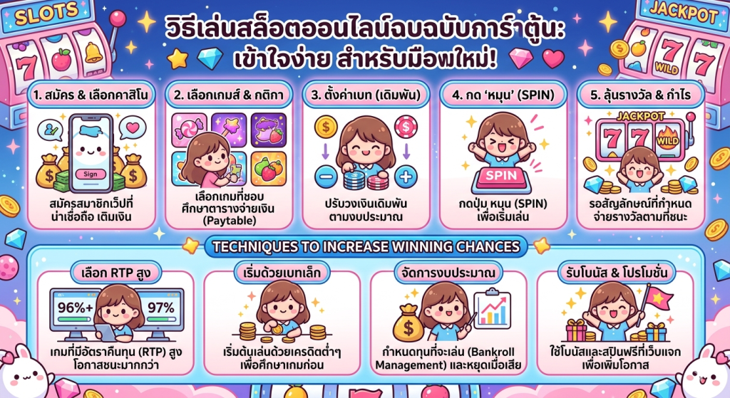 บทความนี้จะพาคุณไปรู้จักวิธีเล่นสล็อตออนไลน์ตั้งแต่พื้นฐาน วิธีเริ่มต้นเล่นสำหรับมือใหม่ เทคนิคบริหารเงินทุน ไปจนถึงเคล็ดลับที่ช่วยให้เล่นสล็อตได้อย่างมีประสิทธิภาพมากขึ้น เพื่อให้คุณสามารถสนุกกับเกมได้อย่างมั่นใจ